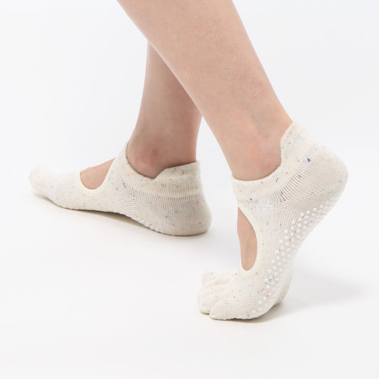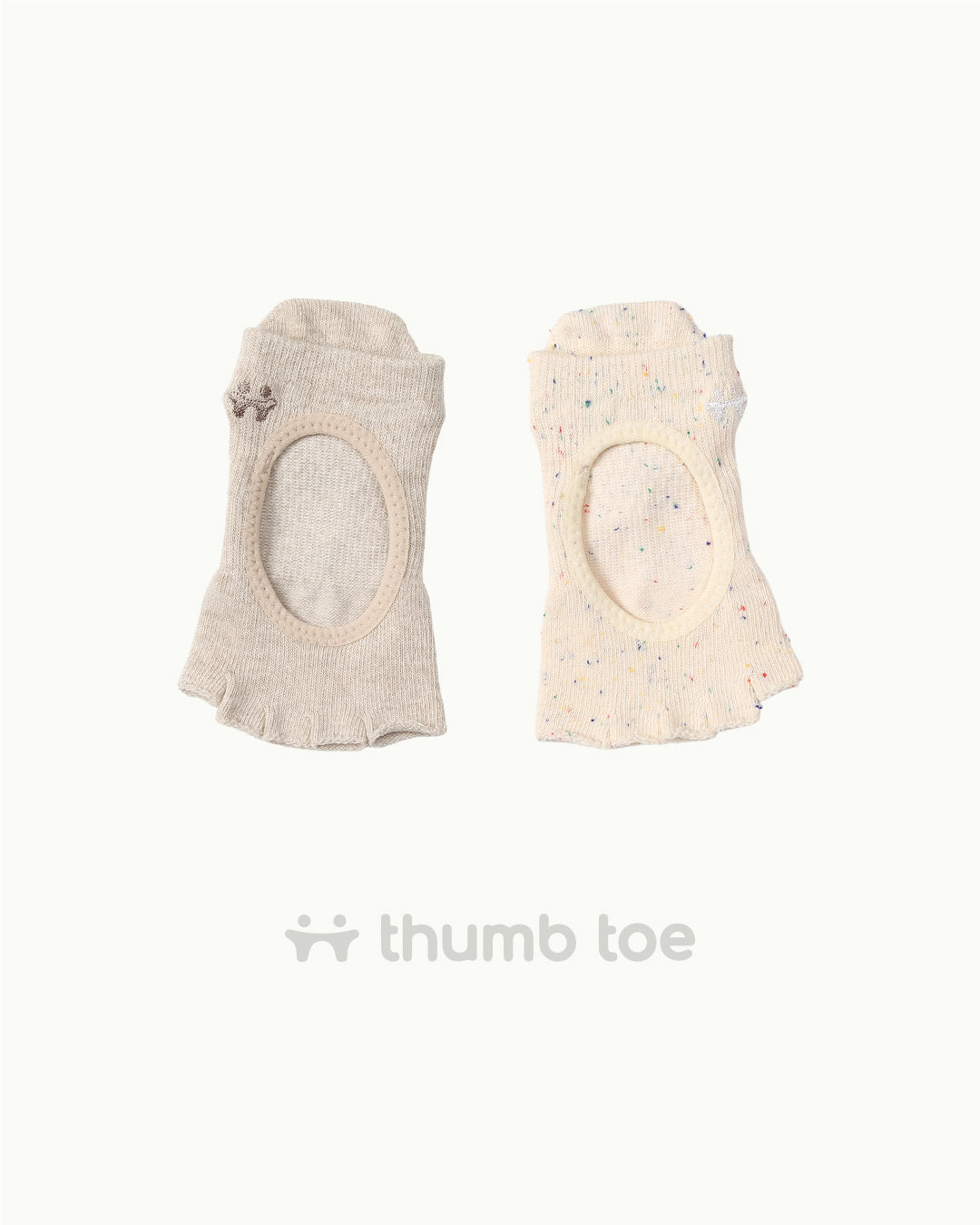 【韓國 Thumb Toe】皮拉提斯止滑五趾運動襪-Earth White