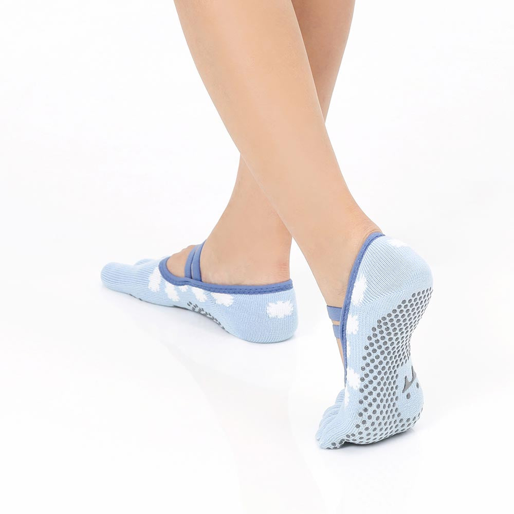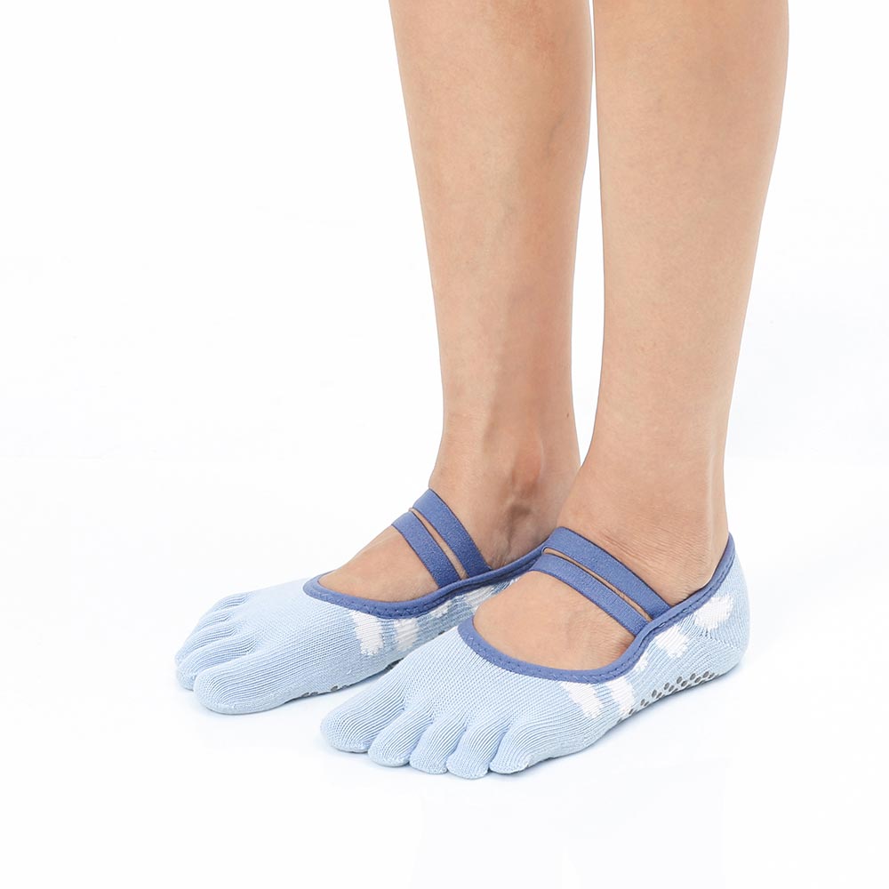 【韓國 Thumb Toe】皮拉提斯織帶款止滑五趾運動襪-Airplane