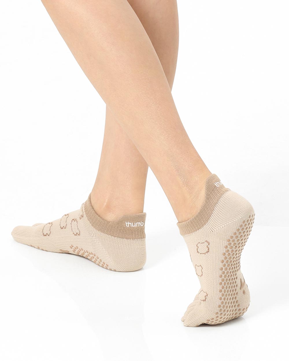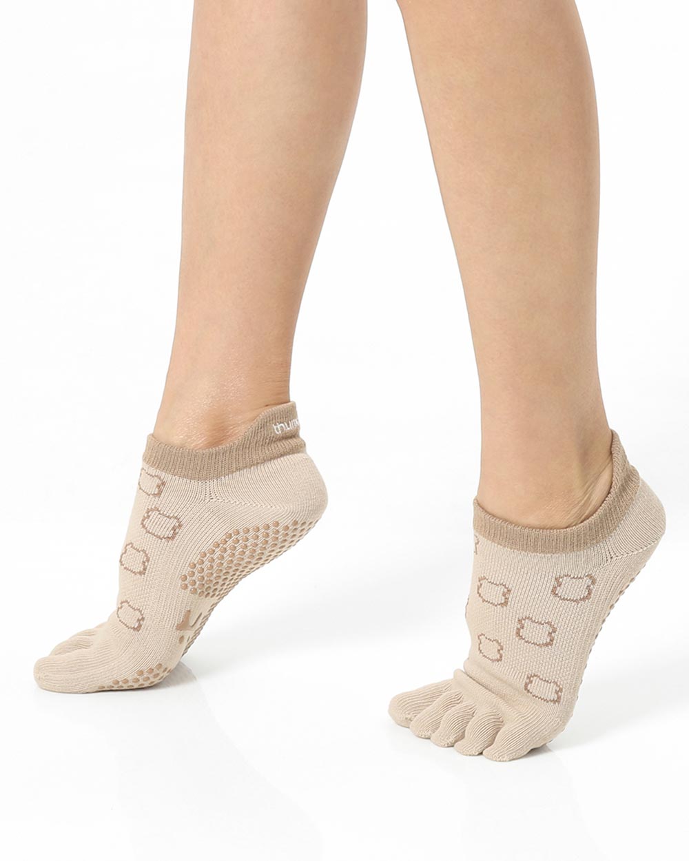 【韓國 Thumb Toe】皮拉提斯織帶款止滑五趾運動襪-Teddy